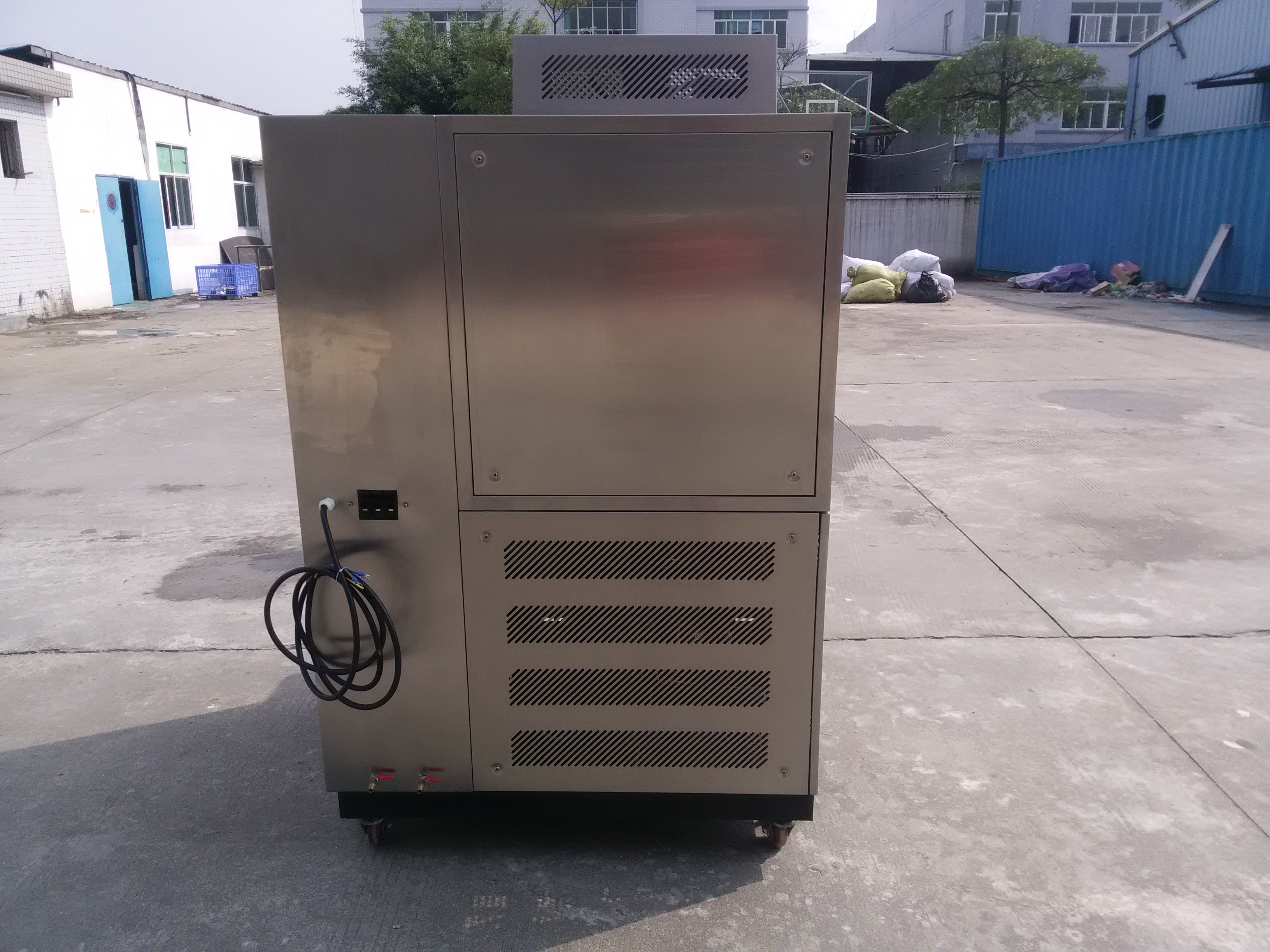 儀表不一樣:恒溫恒濕試驗箱是日OYO儀表,高低溫交變濕熱試驗箱的儀表是韓國TEMI880。